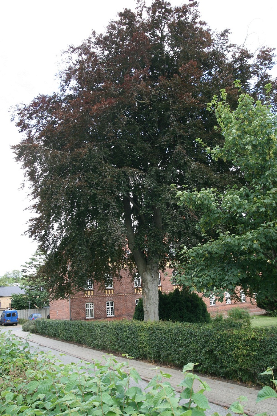 Data om træet: Det drejer sig om en blodbøg på ca. 130 år (skønnes plantet samtidig eller lidt efter hjemmets bygning ). Højden anslås til ca. 25 m. Træet er ganske symmetrisk i sin opbygning – og det er som et park/havetræ velpasset med en gennem tiden passende opstamning. Omkredsen er i 1,3 m højde målt til 3,25 m – hvilket svarer til en diameter på mere end 1 m. Træet står i en afstand til bygningen på min. 16 m.