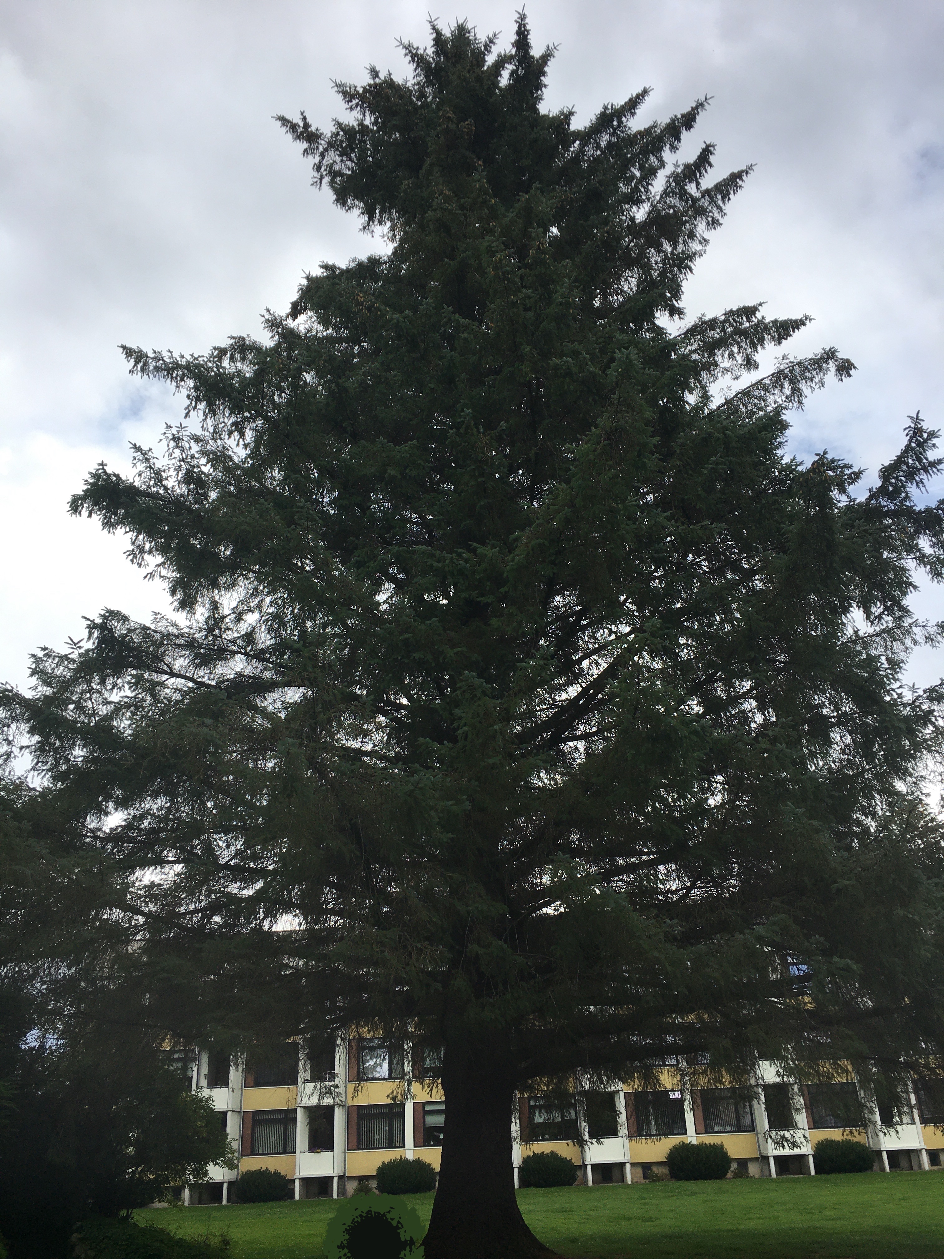 Stor Sitkagran (Picea sitchensis) i parken bag boligerne ved Hjortebrovej / Kløvervej.
